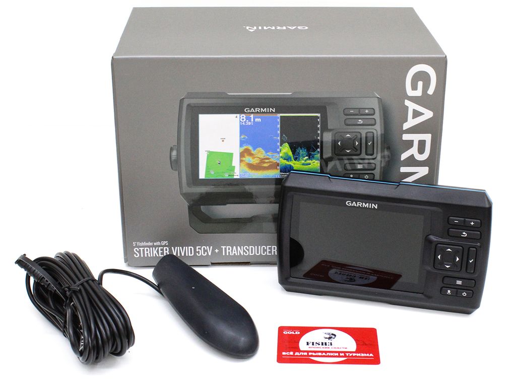 Выбирайте цвет индикации, место для рыбалки и сонар, чтобы увидеть рыбу и подводные объекты в мельчайших деталях с рыбопоисковым эхолот STRIKER Vivid 5cv, включающим трансдьюсер.