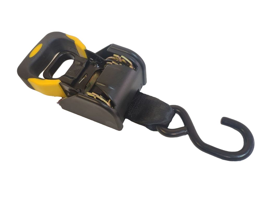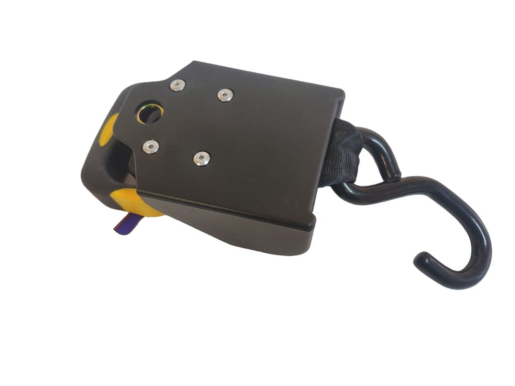 Металлический корпус - оксидирован, пружина из нержавеющей стали. Максимальная разрывная нагрузка 1360 кг, ширина стропы- 48 мм, длинна ленты - 135см Устанавливаются легко и быстро, ремни не запутываются и не теряются.