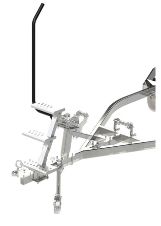 Удобная лестница на дышло лодочного прицепа выполнена из прочной оцинкованной стали с поручнем для безопасного и удобного подъема. Теперь вы сможете быстро и легко подняться на нос лодки, используя нашу лестницу. Ступени имеют специальную перфорацию, которая предотвращает скольжение и обеспечивает безопасность при подъеме. Лестница имеет надежную конструкцию и прочное крепление, защиту от коррозии, что гарантирует долгий срок использования. Идеально подходит для любителей активного отдыха на воде.