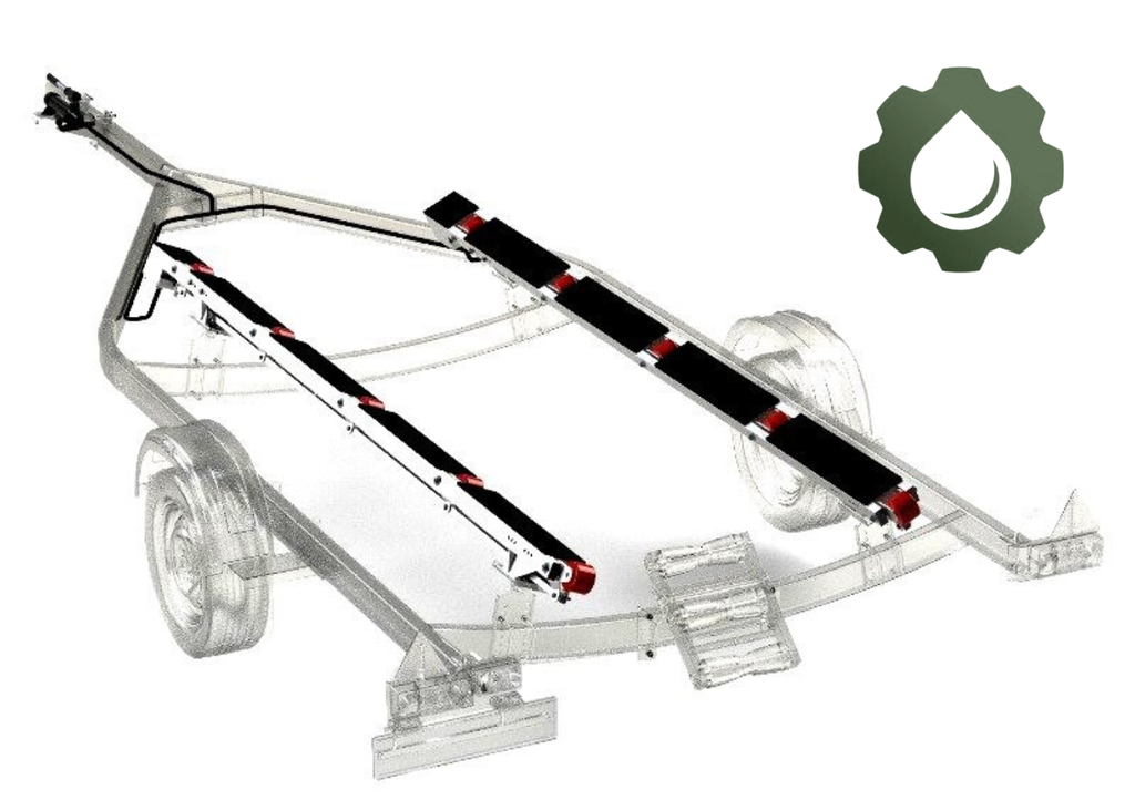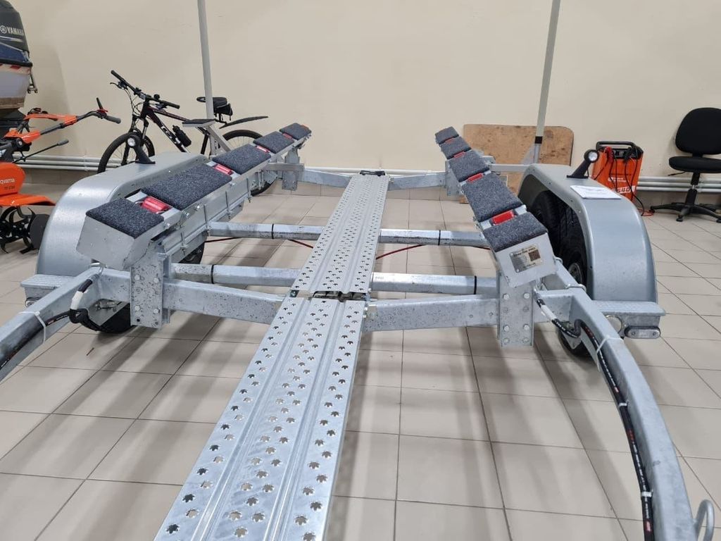 А после установки катера обратно, просто спускаете гидравлику и ролики опускаются внутрь ложементов. Катер устанавливается плотно на ложементы прицепа.